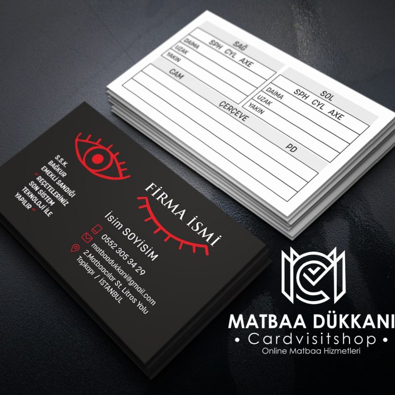 Eczaneler için hazırlanan özel tasarım kartvizitler, sadece iletişim bilgilerini sunmakla kalmaz, aynı zamanda güven, sağlık ve profesyonelliği yansıtır. Sektöre uygun simgeler (yeşil çapraz, yılanlı asa, sağlık ikonu vb.) ve sade ama etkili tasarımlar kullanılarak kurumsal kimliğinizi güçlendirir.