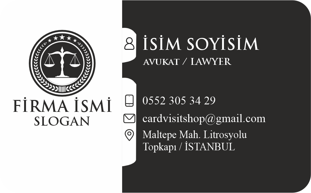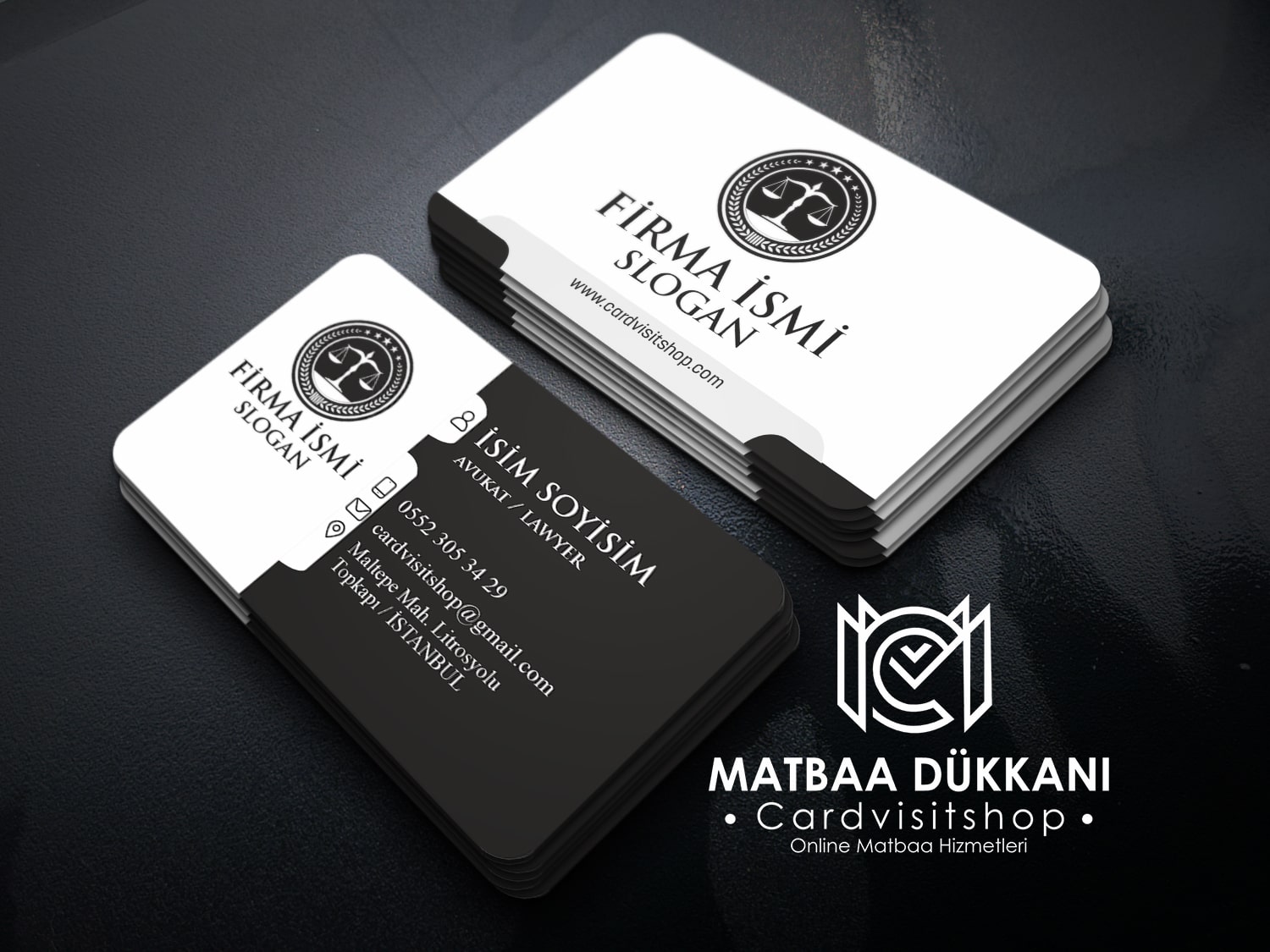 kartvizit genellikle sade, resmi ve güven veren bir görünüme sahip olur. Siyah, lacivert, gri gibi klasik renkler tercih edilir. Hukuk temalı ikonlar (adalet terazisi, sütunlar vb.) da sıkça kullanılır.