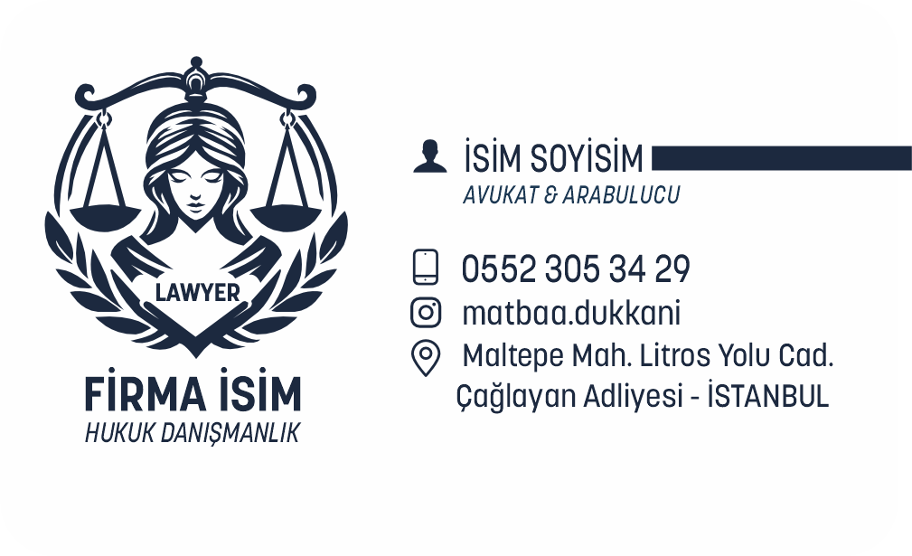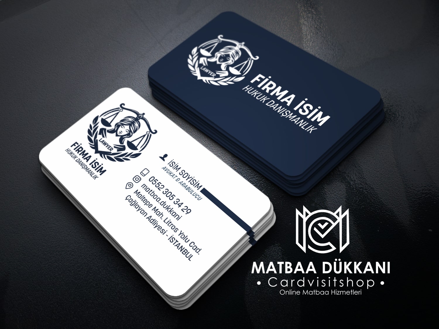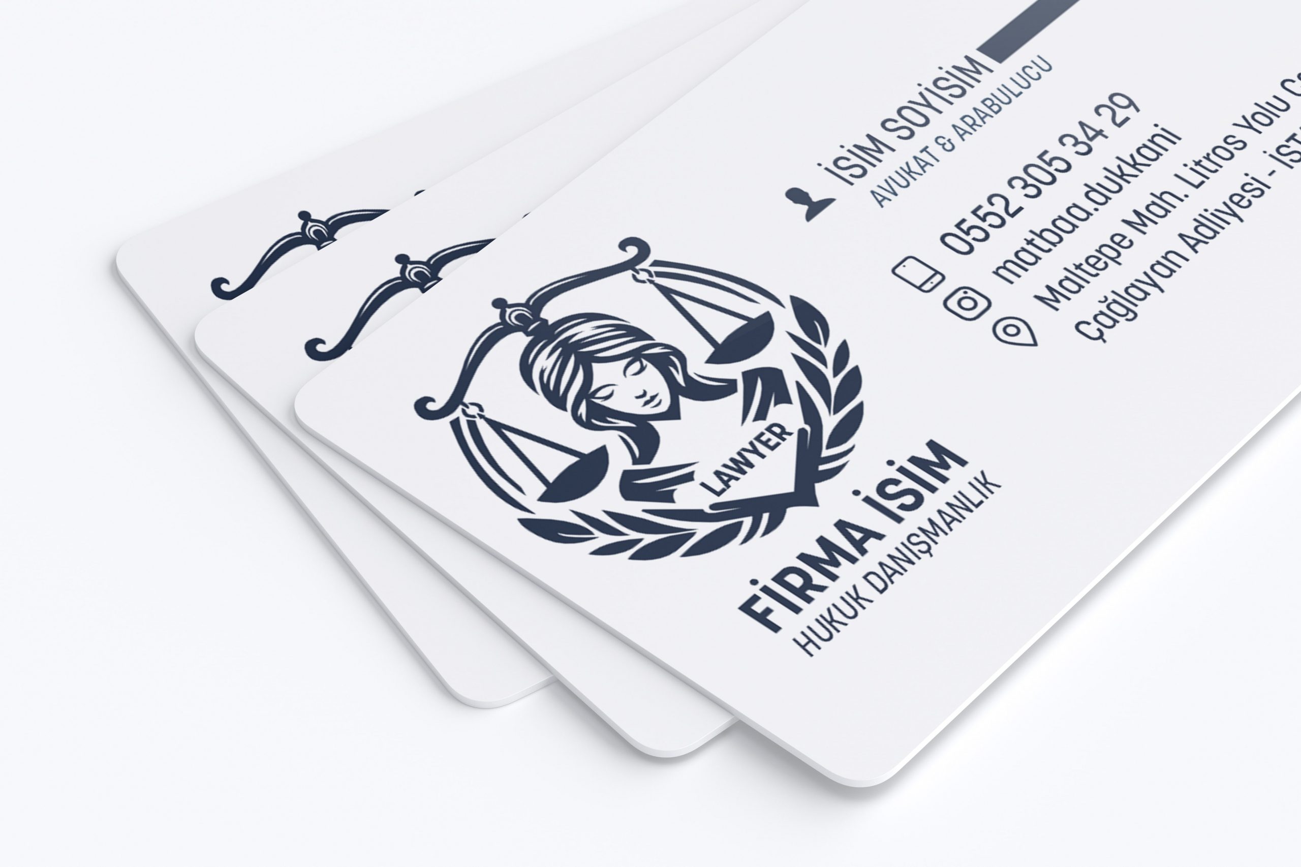kartvizit genellikle sade, resmi ve güven veren bir görünüme sahip olur. Siyah, lacivert, gri gibi klasik renkler tercih edilir. Hukuk temalı ikonlar (adalet terazisi, sütunlar vb.) da sıkça kullanılır.