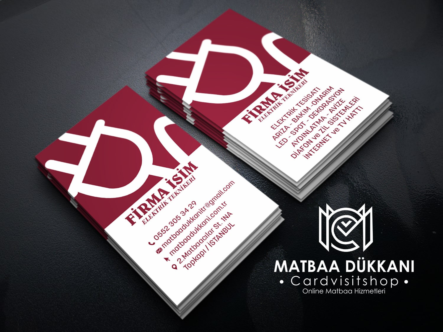kartvizit genellikle sade, resmi ve güven veren bir görünüme sahip olur. Siyah, lacivert, gri gibi klasik renkler tercih edilir. Elektrik temalı ikonlar (kablo, elektrik vb.) da sıkça kullanılır.