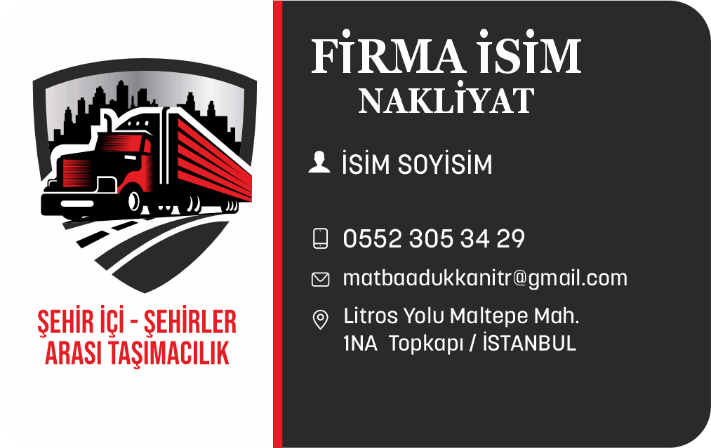 Nakliyat kartvizit, taşımacılık ve lojistik sektöründe hizmet veren firmaların güvenilirliğini ve kurumsal duruşunu yansıtan en etkili tanıtım aracıdır. Evden eve nakliyat, şehir içi ve şehirler arası taşımacılık hizmetleri sunan firmalar için özel olarak tasarlanan kartvizitler, müşteri ile ilk temas noktasında güçlü bir izlenim bırakır.