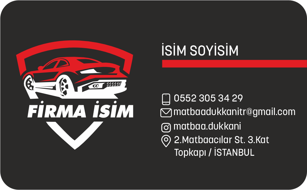 kartvizit genellikle sade, resmi ve güven veren bir görünüme sahip olur. Siyah, lacivert, gri gibi klasik renkler tercih edilir. Oto Galeri temalı ikonlar (araç alım satım vb.) da sıkça kullanılır.